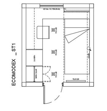 El ST1_Hotelero Single, corresponde a una unidad que permite el desarrollo de una habitación de alta calidad que permite al usuario poder cumplir con todos los requerimientos que tiene la gran minería, empresas forestales, hotelería en general de alto desempeño.