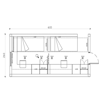 El ST5_Medical single y múltiple, es una unidad simple que permite conforman un box de atención, sala de consultas médicas, entre otros. Esta unidad incorpora revestimiento de alto estándar de calidad para garantizar un ambiento sano acorde a las necesidades médicas. Se dota con sistemas de iluminación led que permiten generar una superficie de luz continua con acentos decorativos. El uso de la madera lo vemos presente en la separación entre unidades, uso de cristal para mejorar la sensación de amplitud y conexión entre recintos. Pisos vinílicos soldables que permiten reducir la acumulación bacteriología.